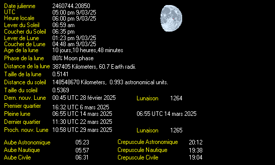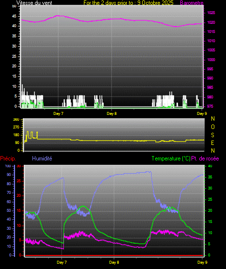 Précipitation (dernière heure) | 0.0 mm | Précipitation (depuis minuit) | 0.0 mm (0.00 in.)--- |