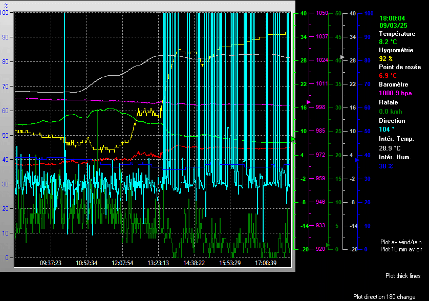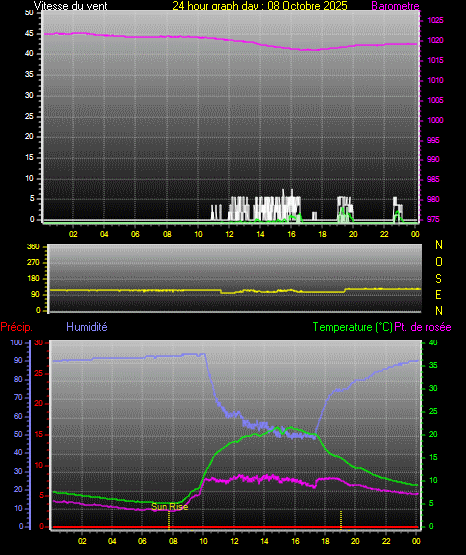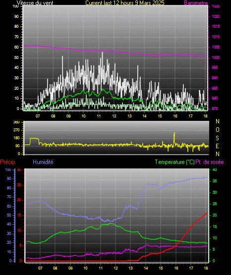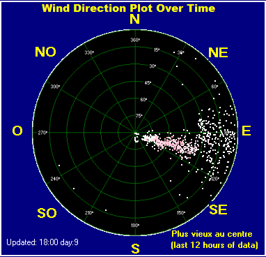 Température des rafales | 19.1°C | Rafale maximum (dernière heure) | 0.0 kmh (0.0 kts) at: 15:21 |
