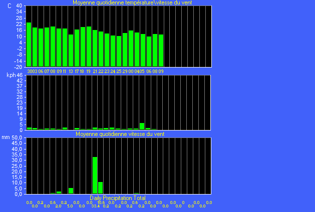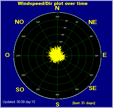 Vitesse du vent maximum = 14.8 kmh de 256°(WSW) le 05 à 18:48