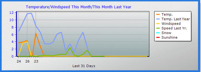 Coldest day on record -1.5 oC à: 18:00 le: 13 Janvier 2025